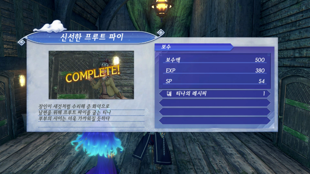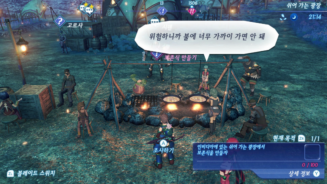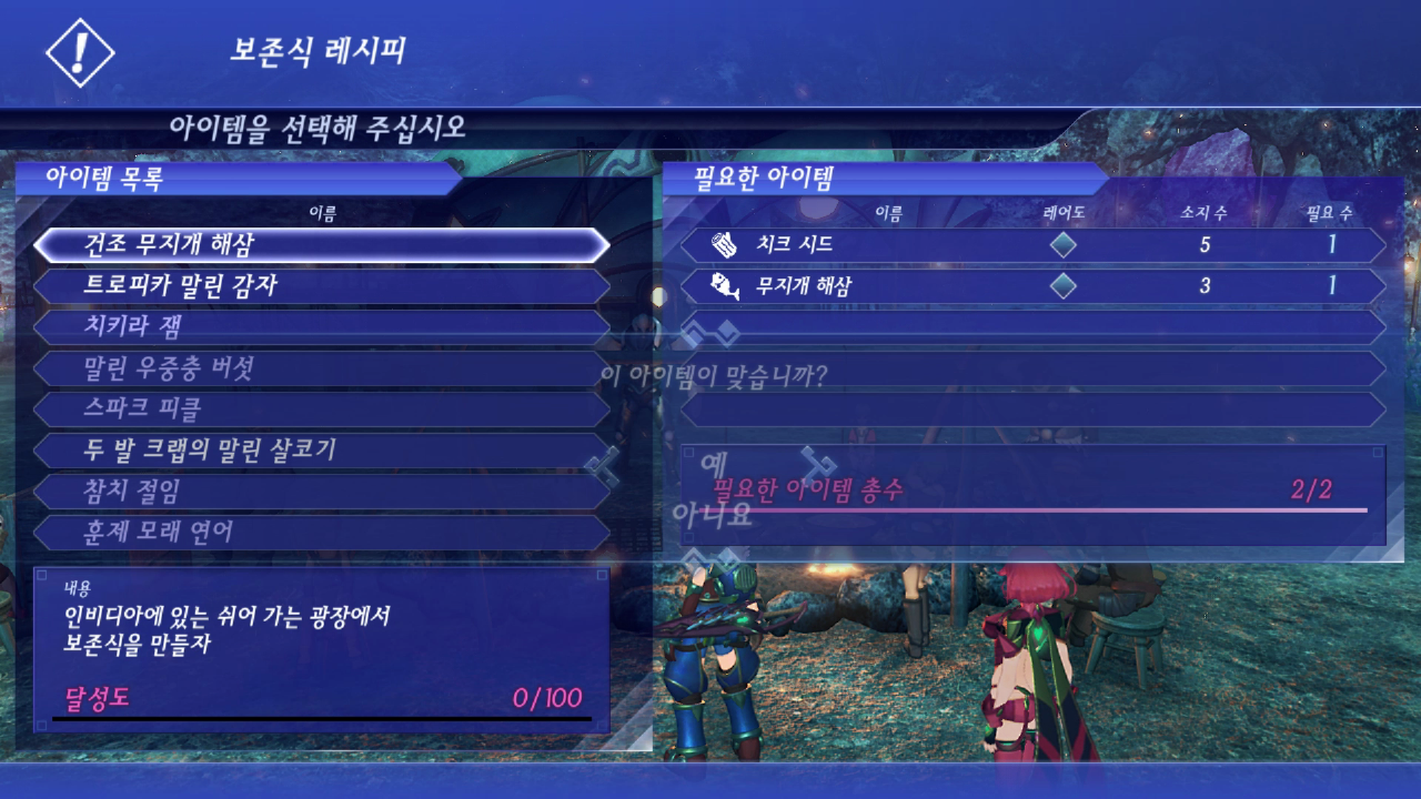 의뢰를 받고 즈오와 대화를 하고 근처에 보면 보존식 만들기가 있다.
