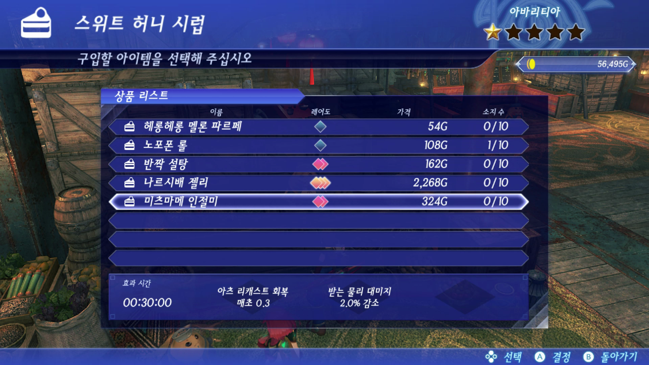 아바리티아 상회 > 골트문트 > 중앙교역소에서 스위티 허니 시럽에서 인절미 3개를 산다.