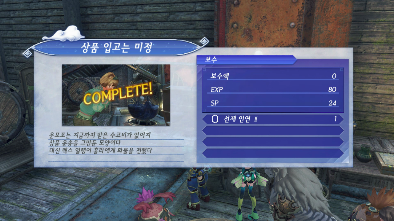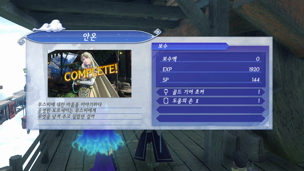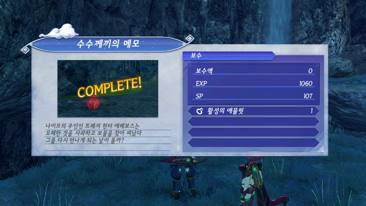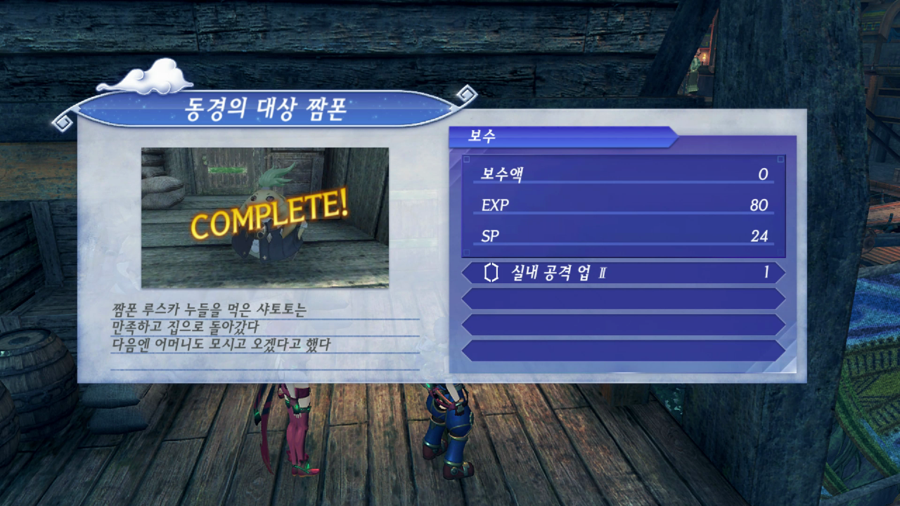 달성도 100을 만들고, 즈오 와 대화 하고 유우에게서 의뢰를 완료한다.