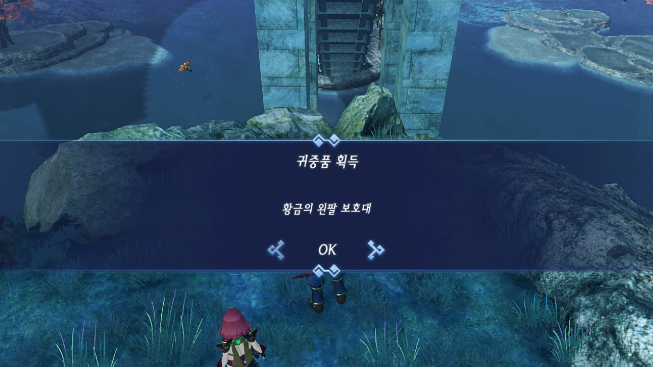 아래를 스샷을 보고 뛰어 내려서 오른쪽으로 돌아가면 황금의 왼팔 보호대를 얻을수 있다.