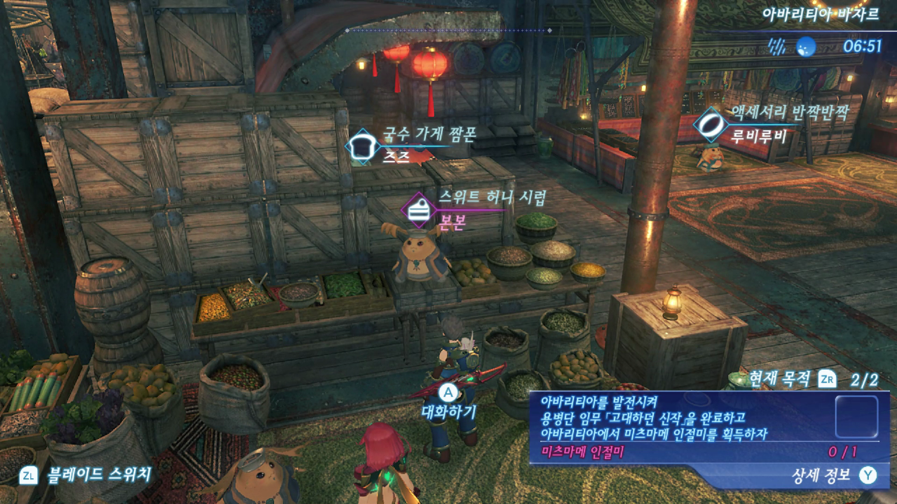 야채상점 앞에 무스비와 대화를 하면 퀘스트가 진행
