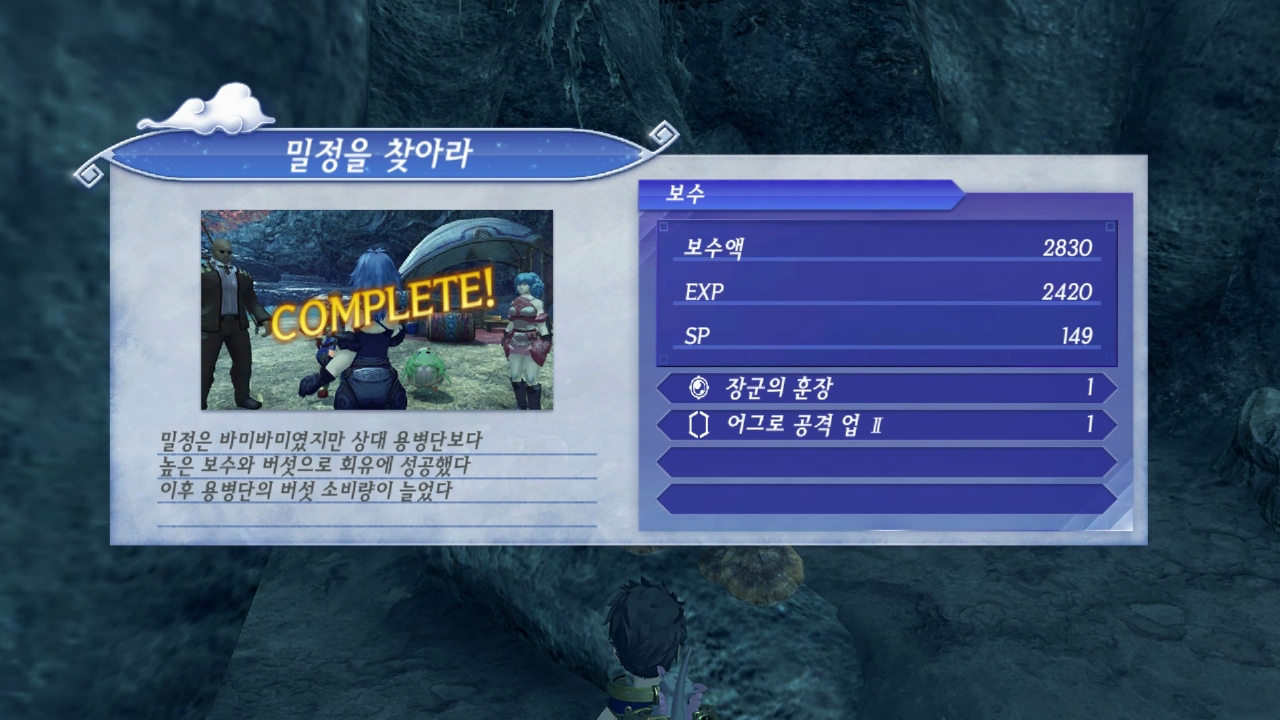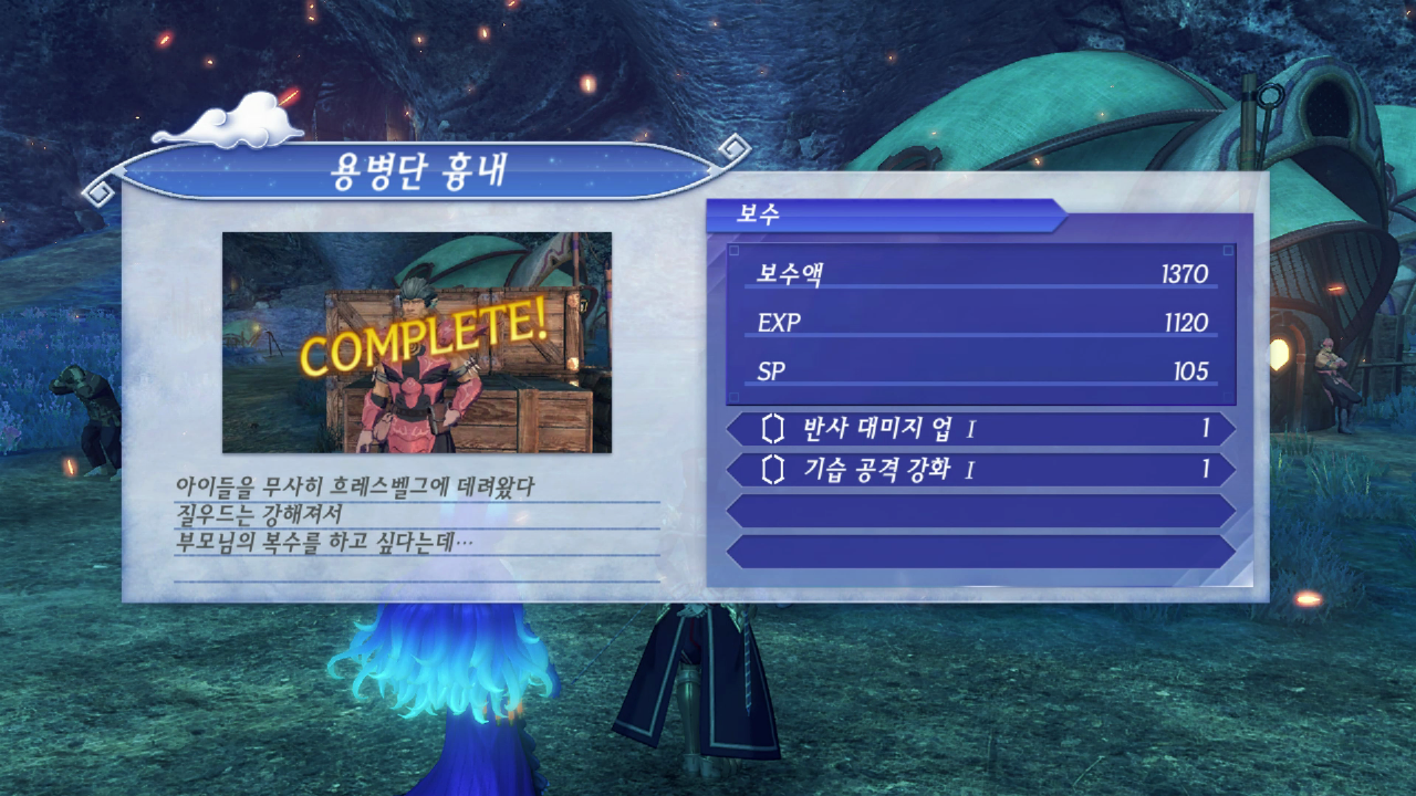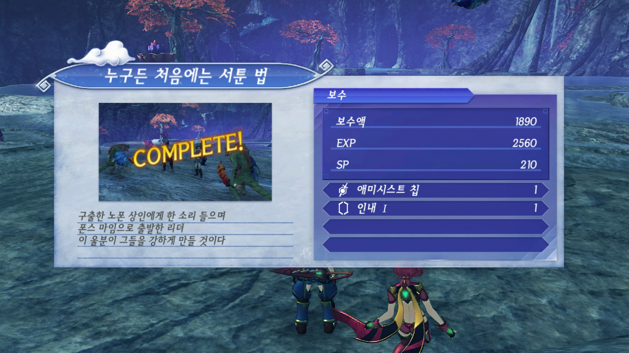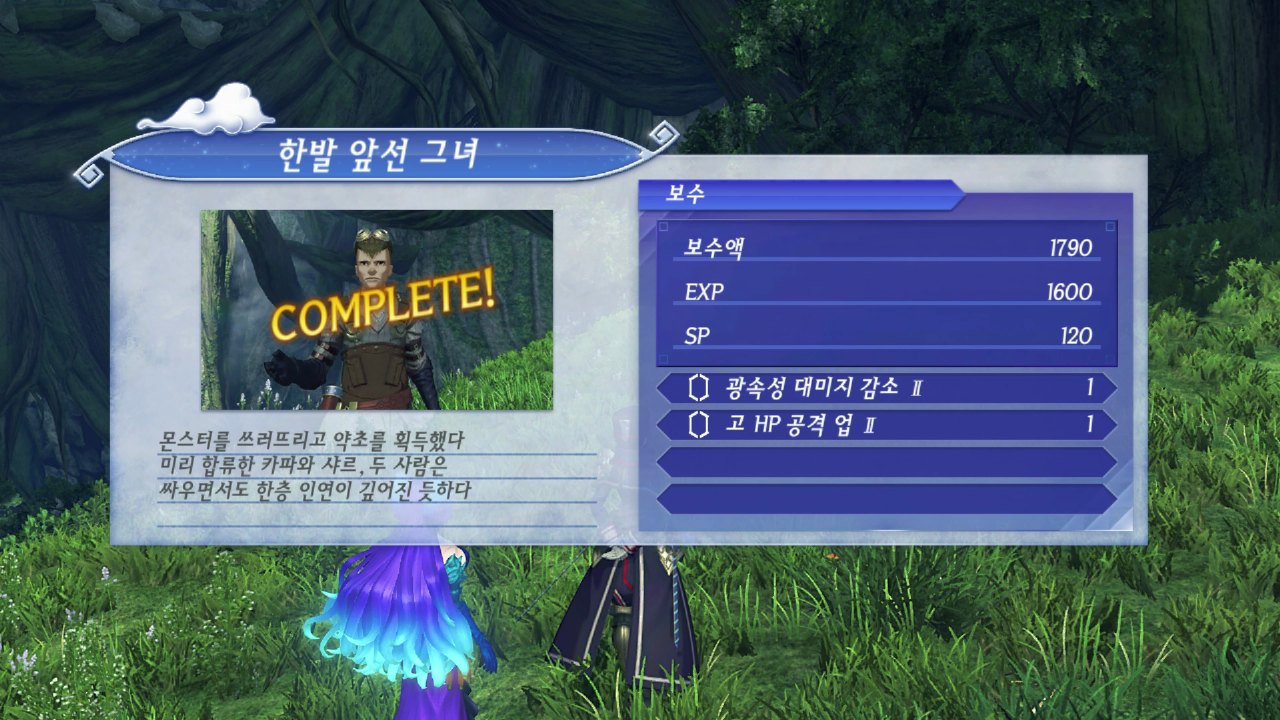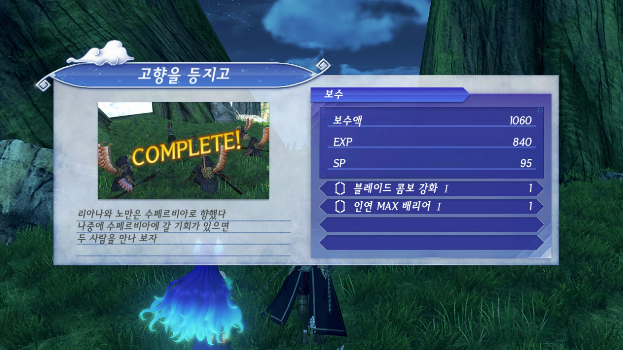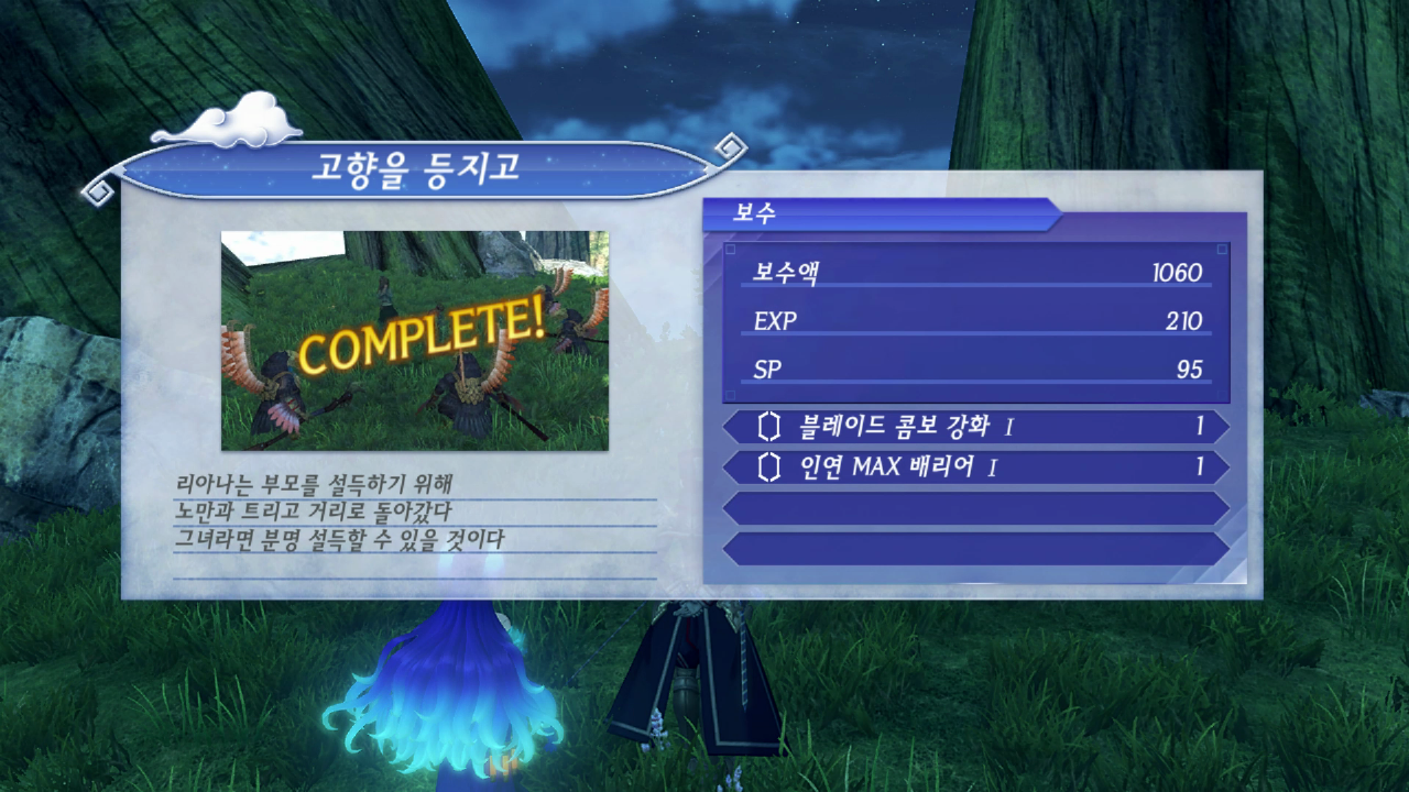 전투가 끝나고 돌아와 퀘스트를 완료한다.