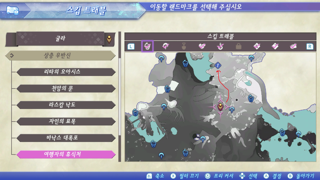 굴라 > 상층 우반신 > 여행자의 휴식처로 이동해서 지도를 보고 이동한다.