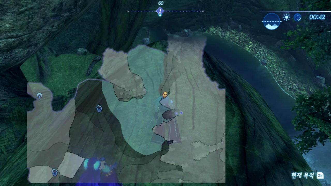 아래 지도에서 나무줄기를 따라서 미끄러지듯이 내려간다