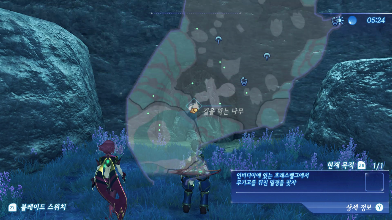 줄기가 있어 위로, 아래로 이동할 수 있는데 동굴로 보이는 곳으로 들어가면 된다.