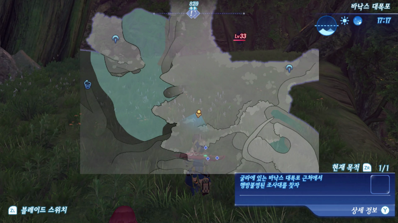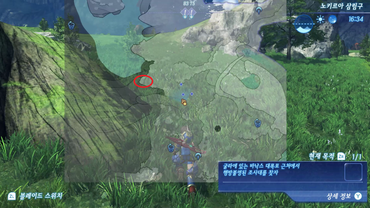 떨어지고 나서 표시된 곳으로 가면 조사대를 찾을수 있다.