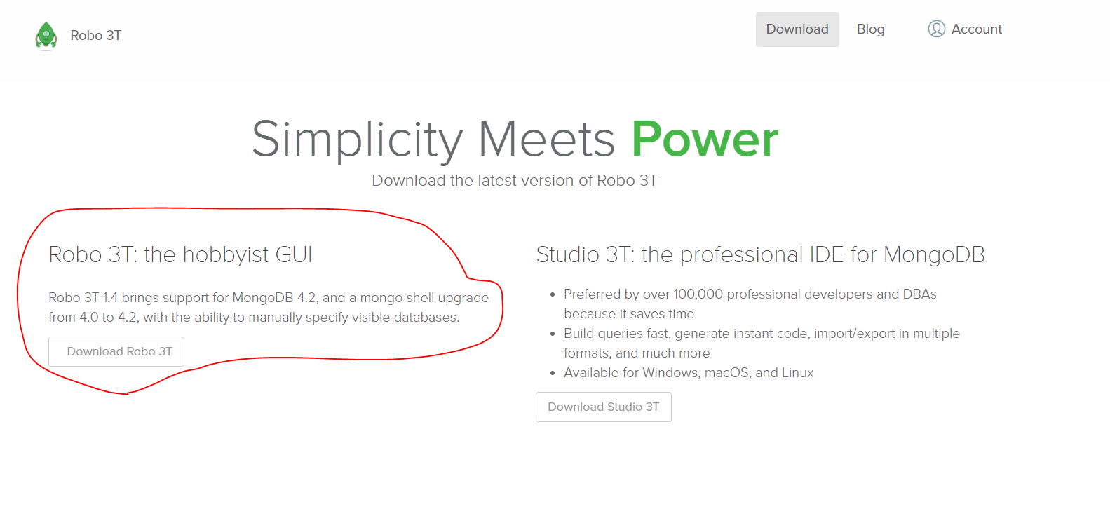 Robo 3T: the hobbyist GUI Robo 3T 1.4 brings support for MongoDB 4.2, and a mongo shell upgrade from 4.0 to 4.2, with the ability to manually specify visible databases. Download Robo 3T