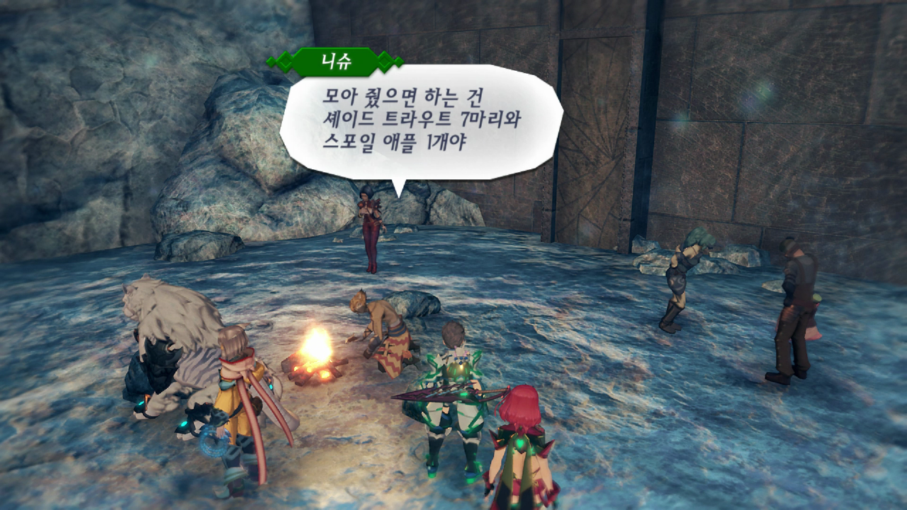 니슈랑 대화를 하면 셰이드 트라우트 7개, 스포일 애플 1개를 구해야된다