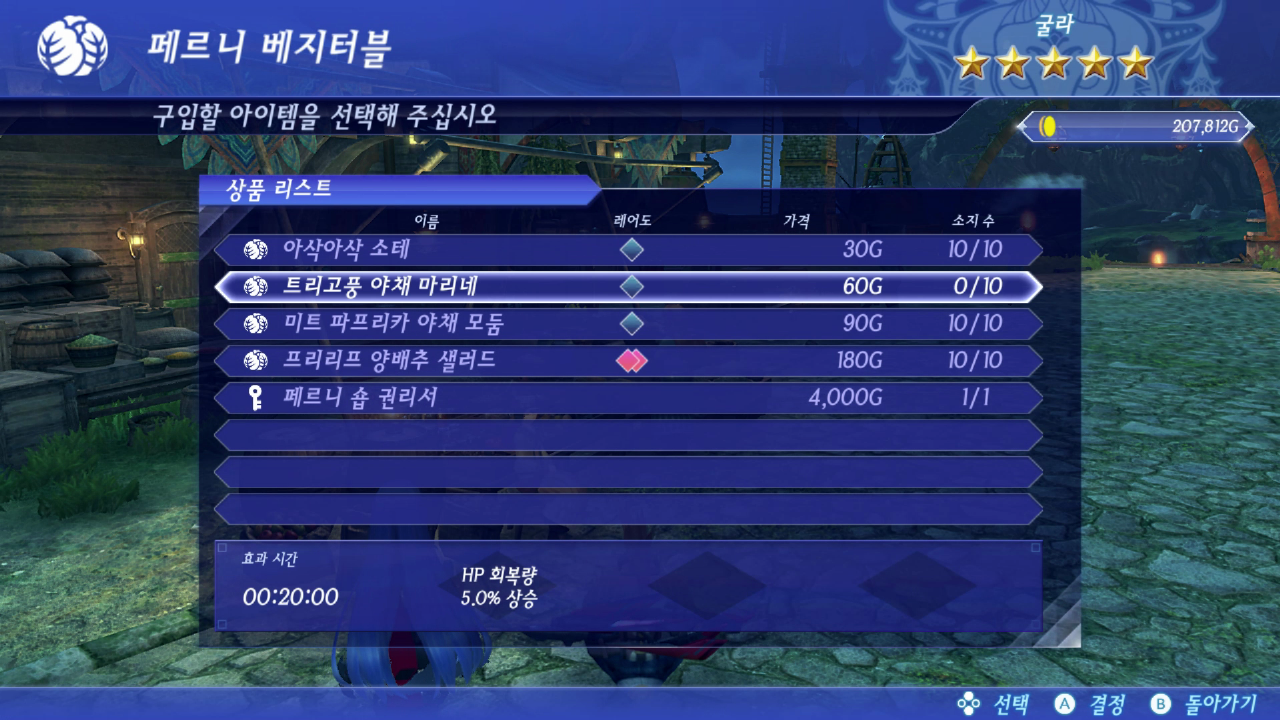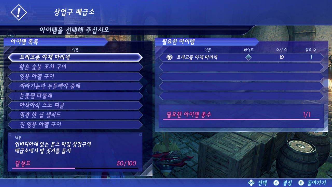 야채가게에서 '트리고풍 야채 마리네'를 구매해서 채우면 된다