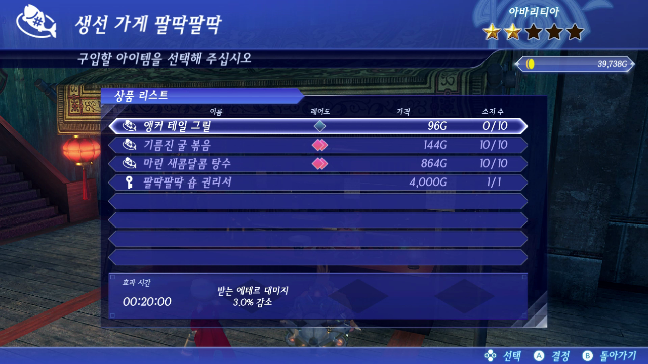 생선가게에서 아이템 10개씩 구매해서 채우면 된다.