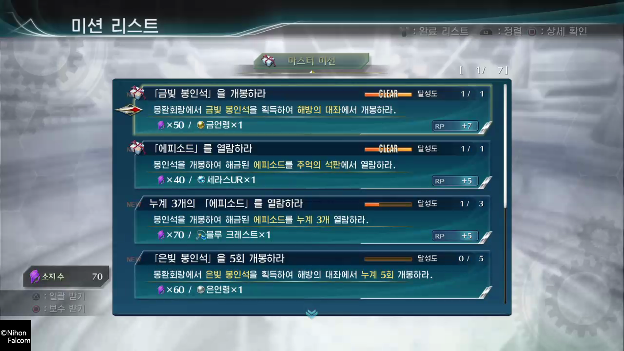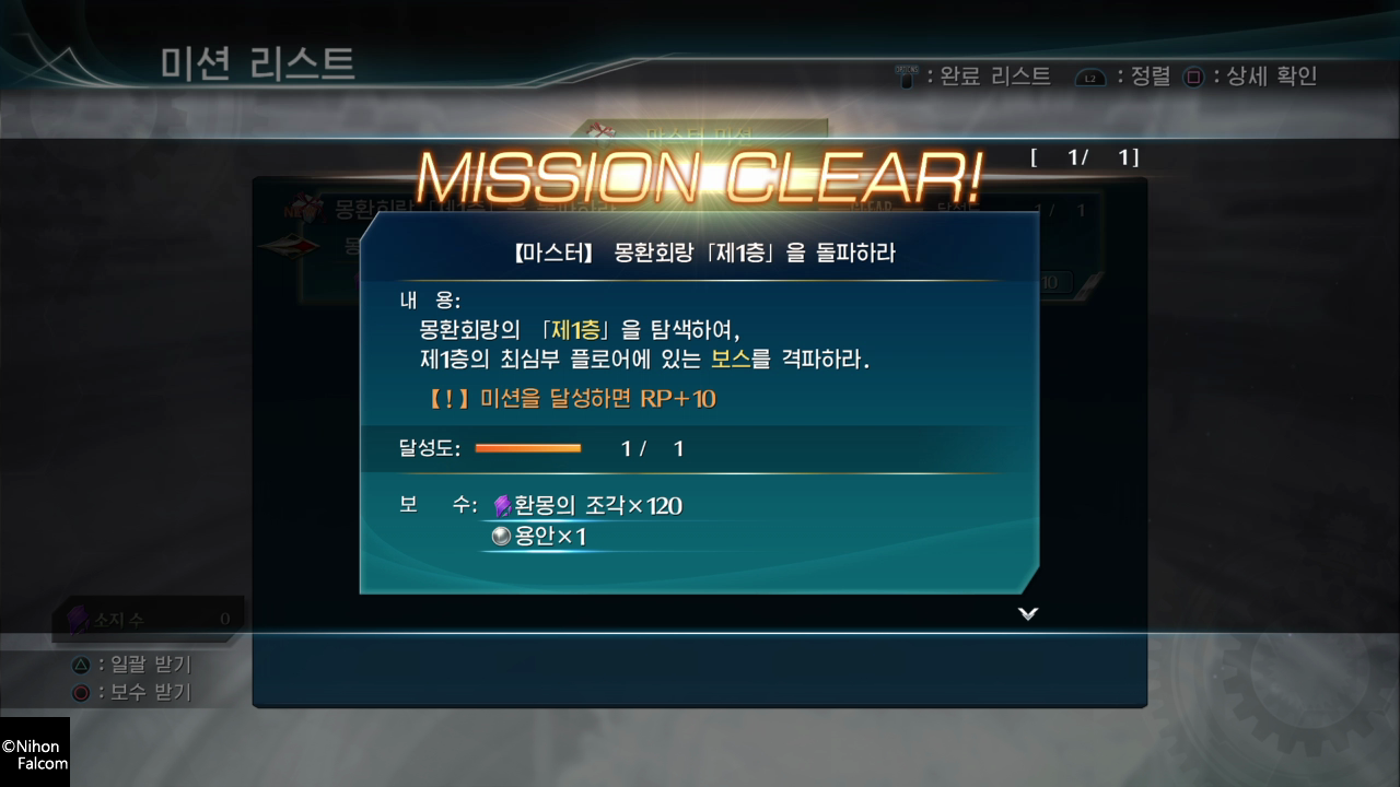 전투가 끝나면 중앙에 있는 중주 핵석 미션, PR 보고를 하고 보상을 받는다