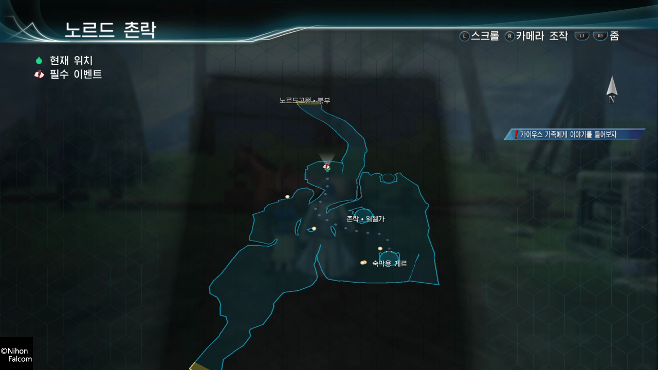 메인 - 가우스 가족에게 이야기를 들어보자. 대화가 끝나면 노르드고원 북부로 이동할 수 있다.