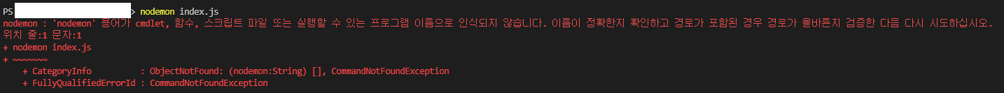 nodemon : 'nodemon' 용어가 cmdlet, 함수, 스크립트 파일 또는 실행할 수 있는 프로그램 이름으로 인식되지 않습니다.