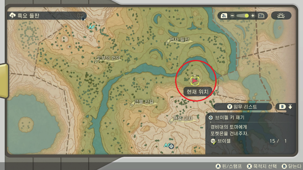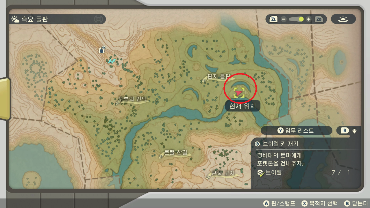 아래 지도에서 이브이 잡고 기지에 가서 아침까지 쉬고 다시 가서 잡는 식으로 반복해서