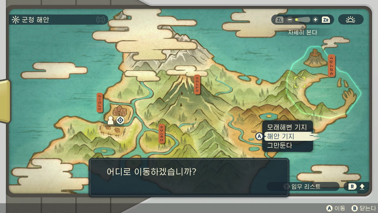 군청 해안에 해안 기지로 이동한다