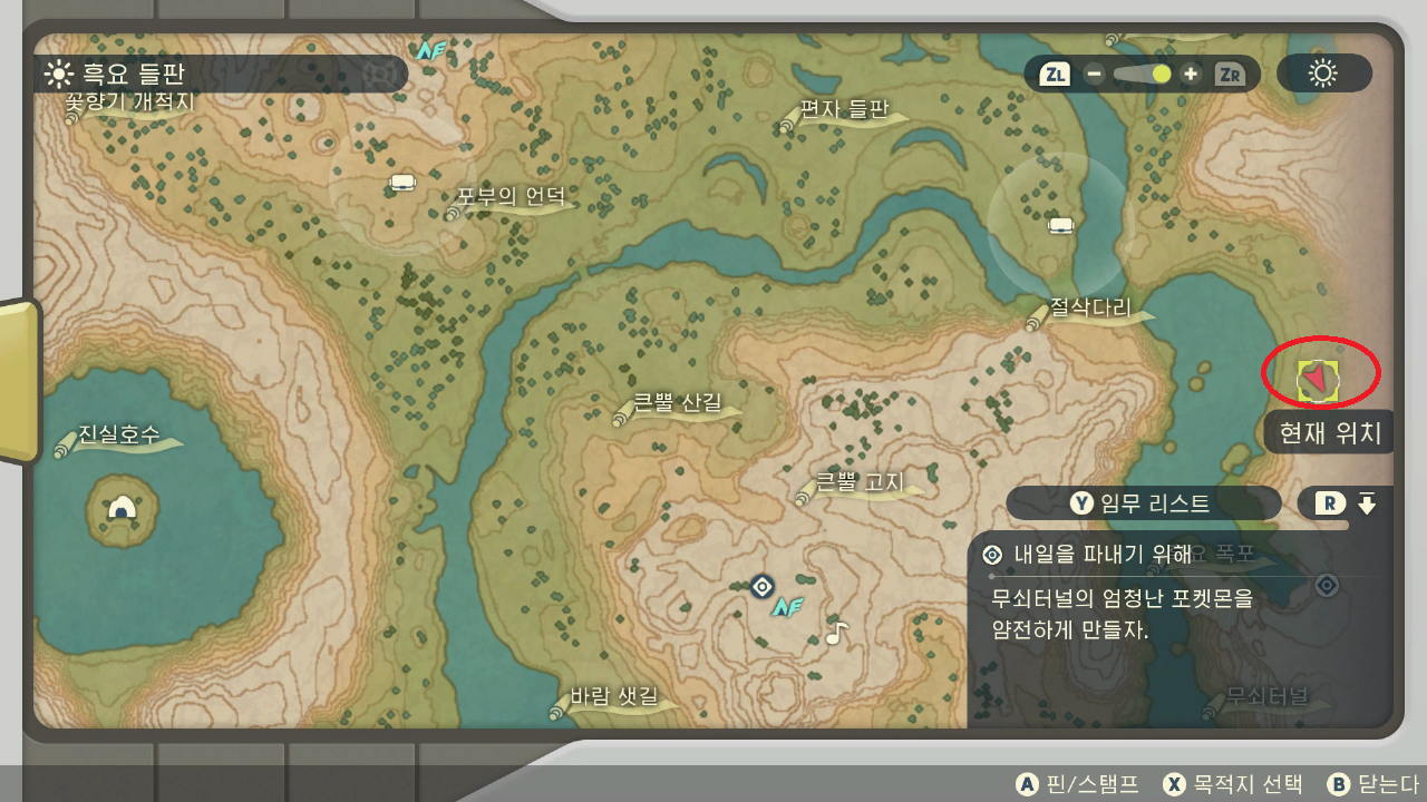 흑요 들판에 아래 지도에 표시된 곳으로 간다