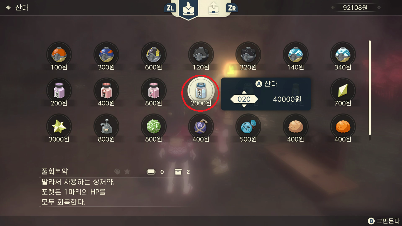 나는 풀회복약하고 기력의덩어리를 구매 했다