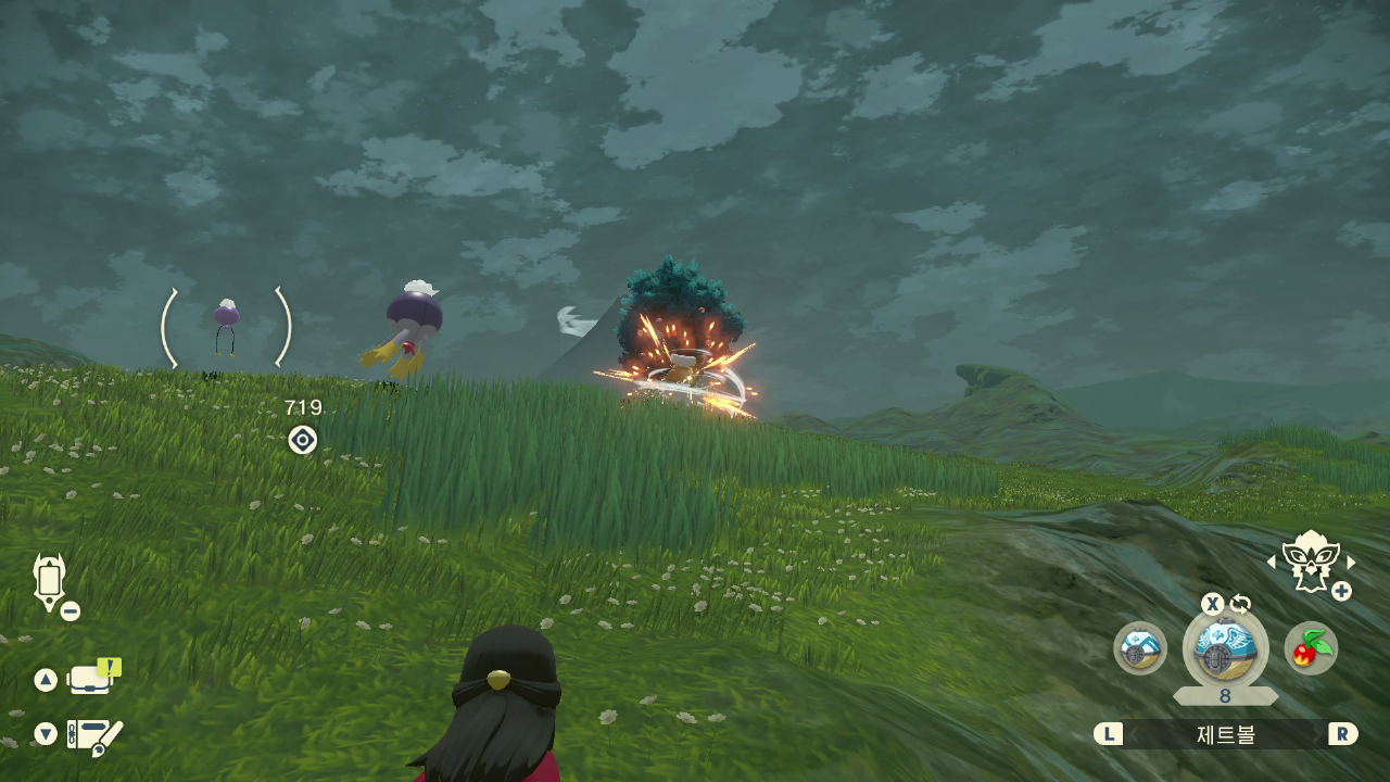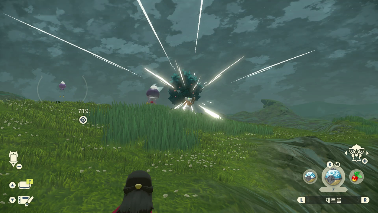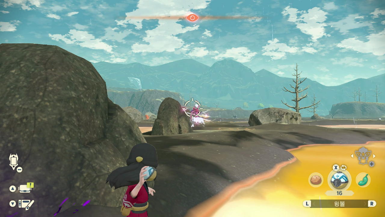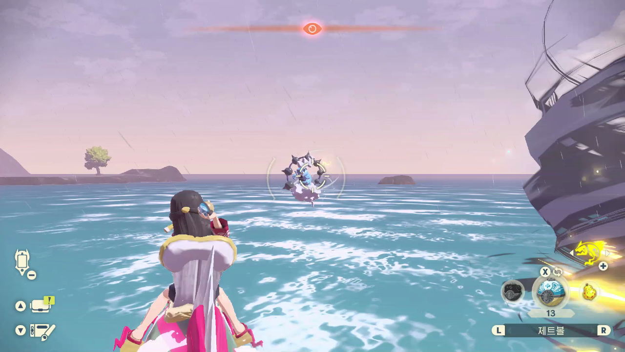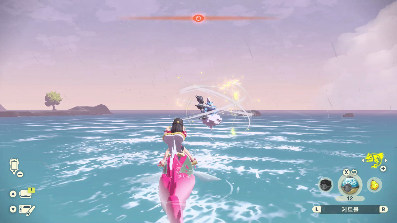가까이 다가가면 회오리 바람을 공격하는데 옆으로 피해주고 포켓볼 던져서 회오리를 없앤다