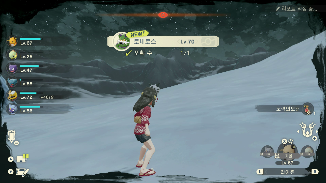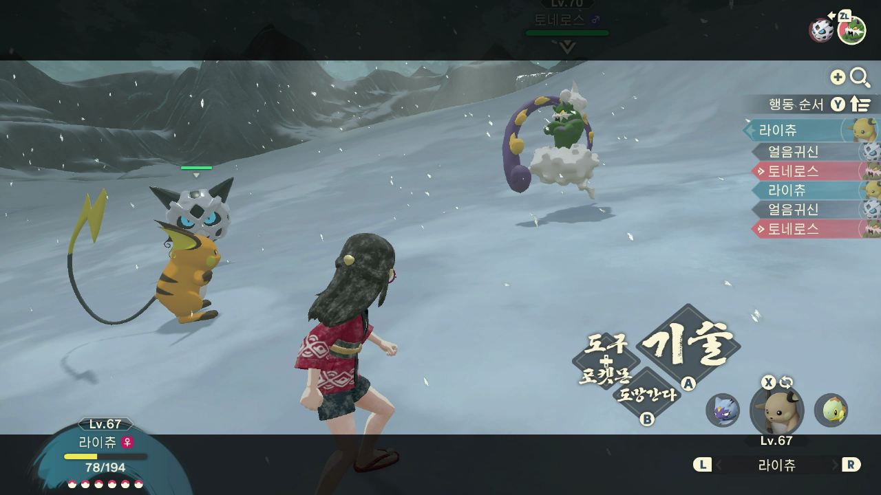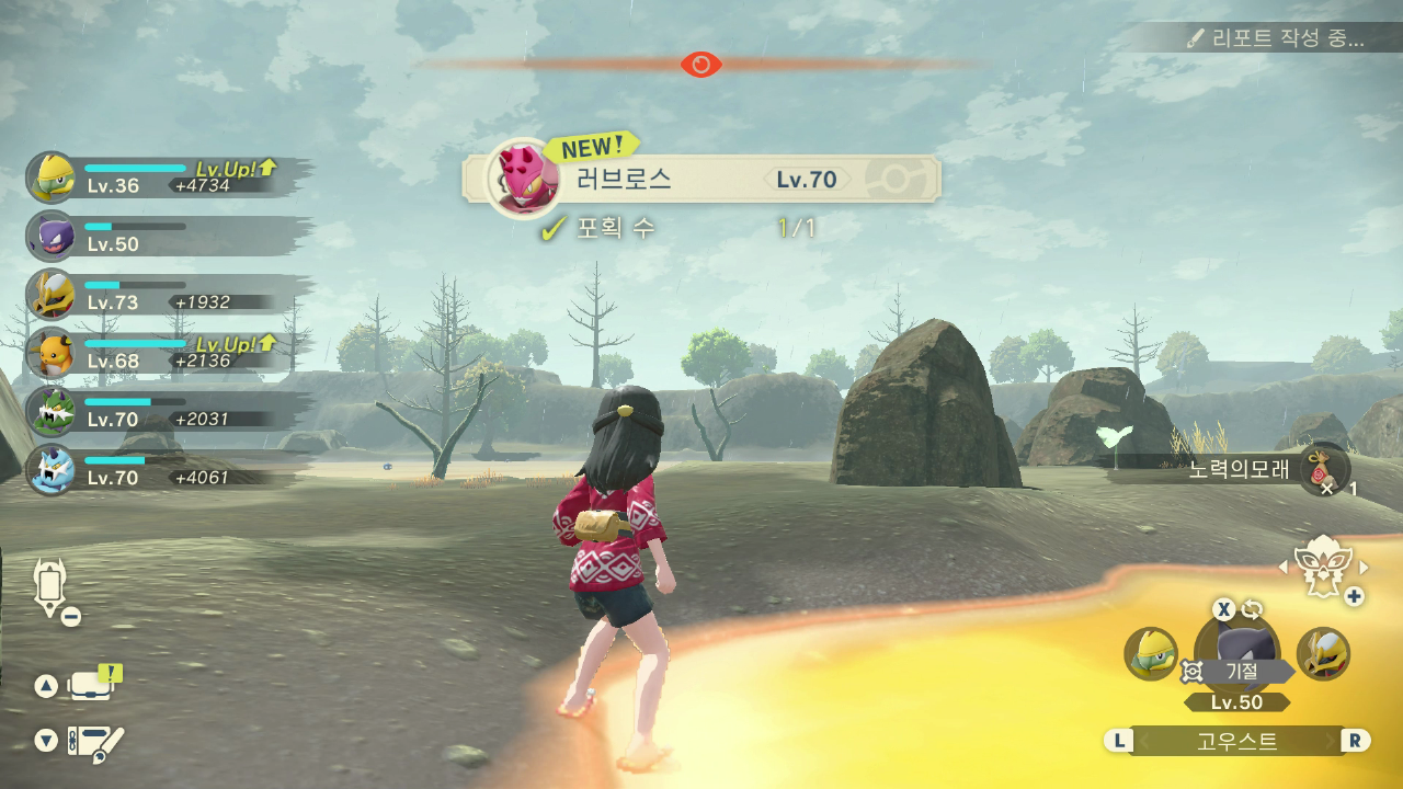 바위 뒤에 숨어서 회오리를 없애고 포켓몬으로 상대해서 잡았다