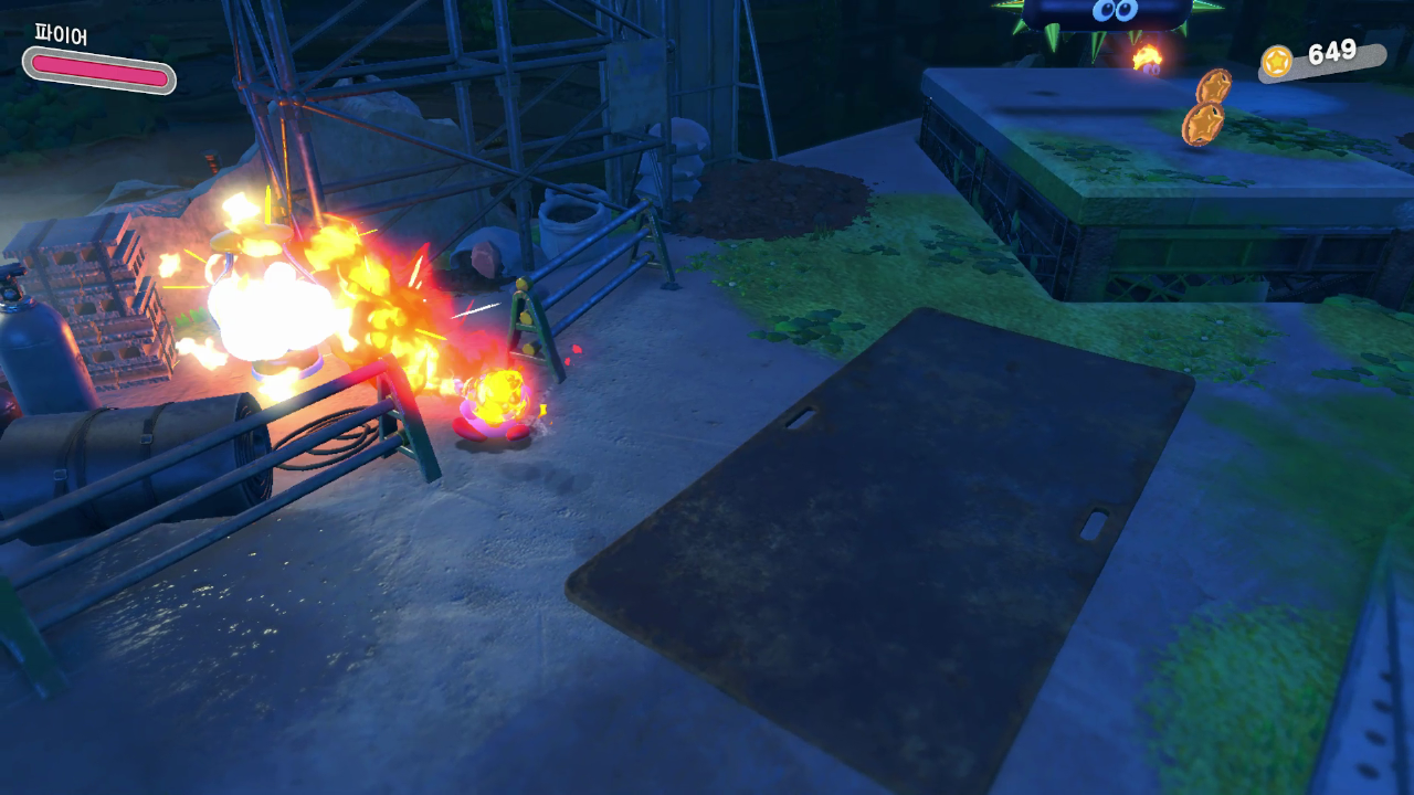 웨이들 디 구출하기 2/4 : 랜턴에 불을 붙이고 다음 스테이지로 가는 문 위로 올라가서 폭탄을 터트리면 웨이들 디가 있다