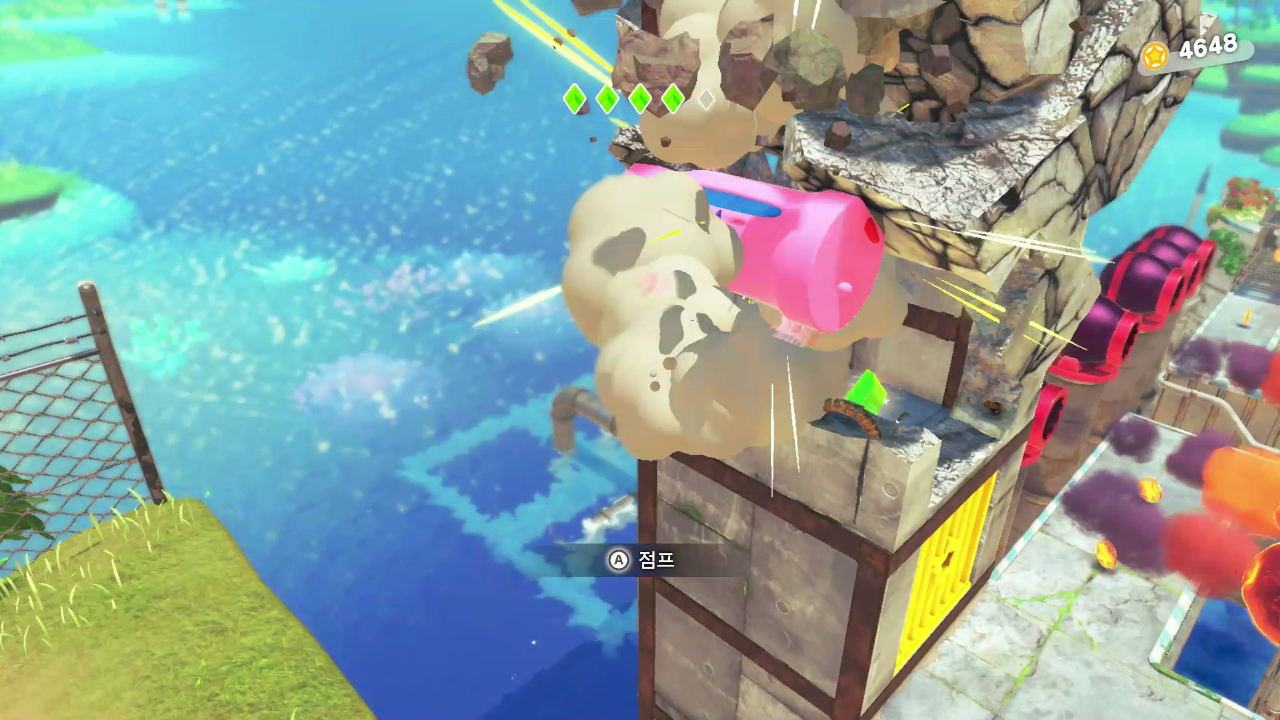 세번째 보석을 얻고 바로 아래에 보면 별 모양 땅이 있는데 드릴을 사용하면 별을 타고 위로 이동한다