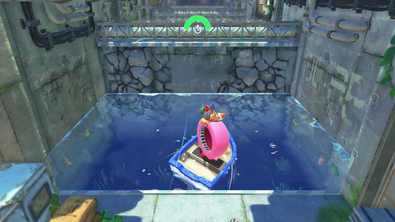 보트를 타고 벽을 부수면서 앞으로 나아가야 한다