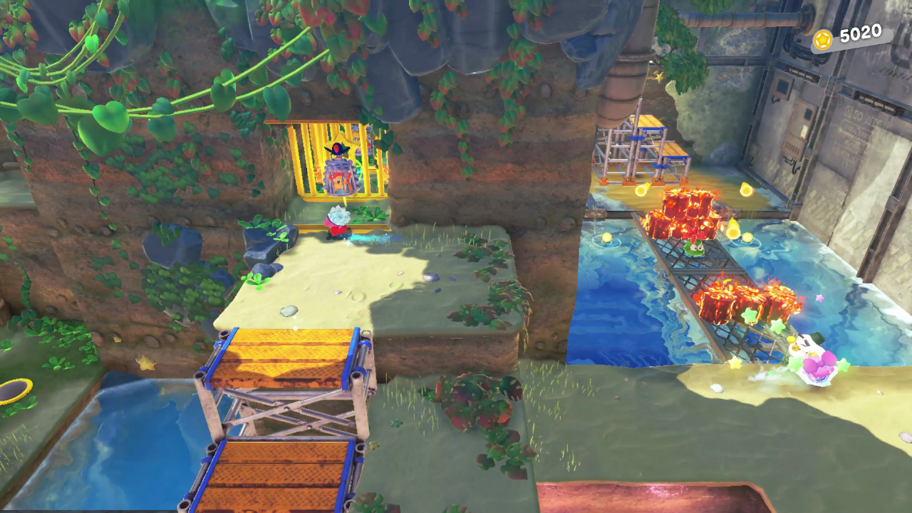 웨이들 디 구출하기 2/5 : 다음맵으로 넘어가기 전 오른쪽에 폭탄을 터트리고 아래로 가면 숨겨진 문이 열린다. 들어간다