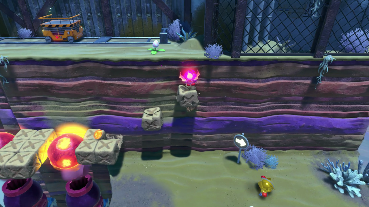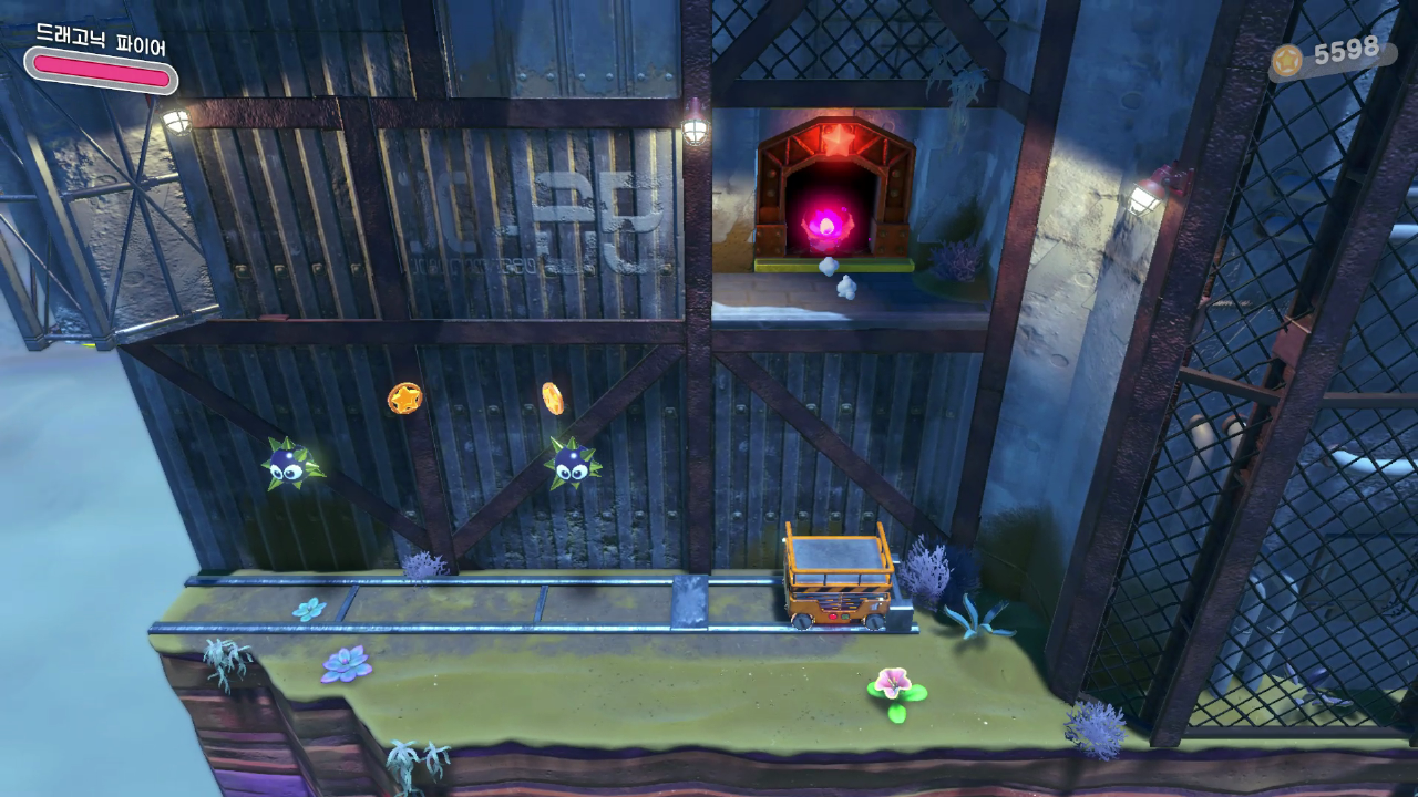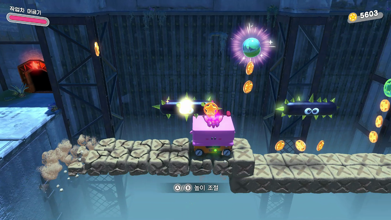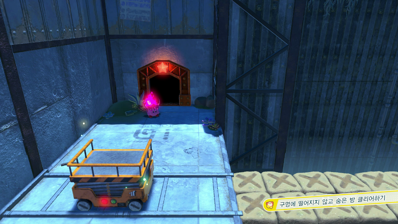 구멍에 떨어지지 않고 숨은 방 클리어하기 : 작업차를 몰로 빠르게 위로 올라가야 한다. 떨어지면 실패...