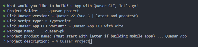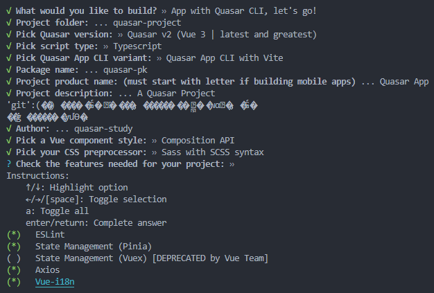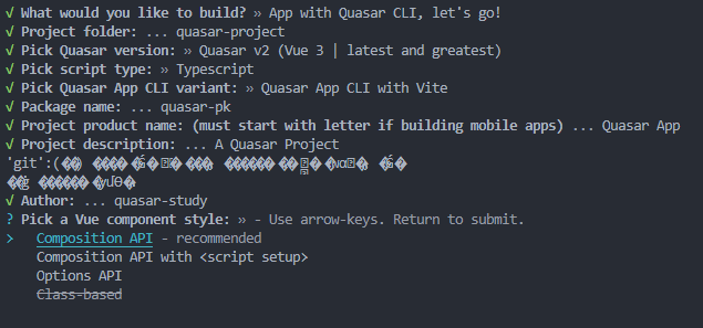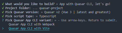 Quasar App CLI with Webpack, Quasar App CLI with Vite 둘중 하나를 선택해야 하는데