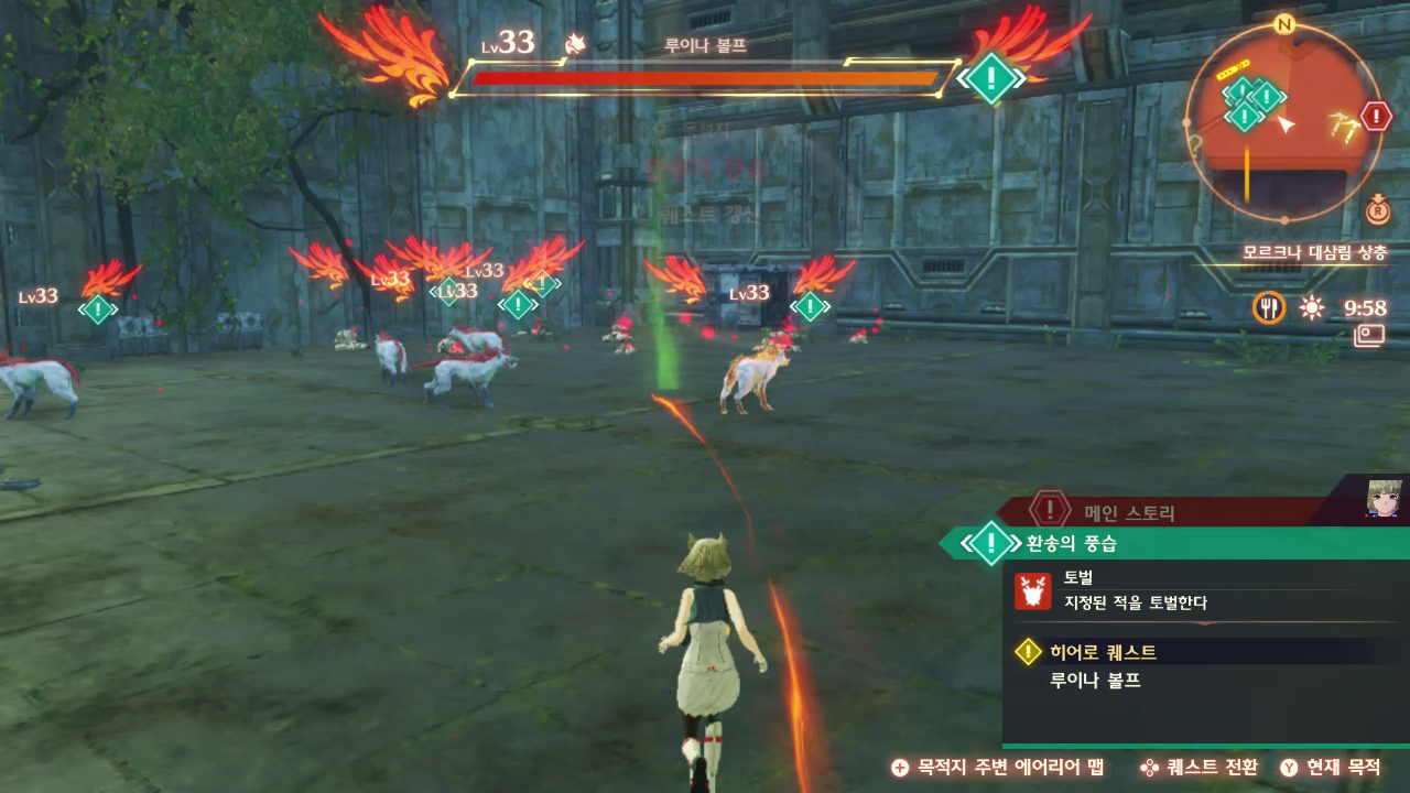 목적지에 도착해서 루이나 볼프를 모두 처치한다