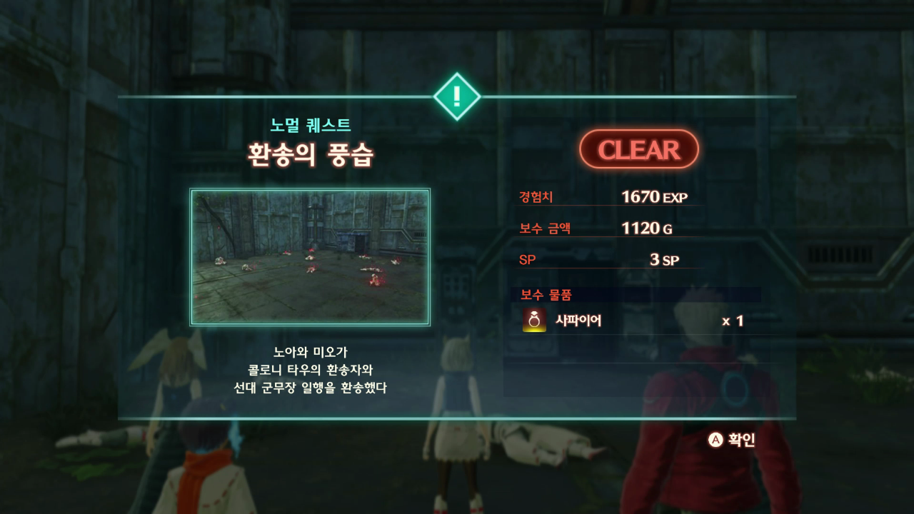 전투가 끝났으면 환송하기를 하면 퀘스트 완료