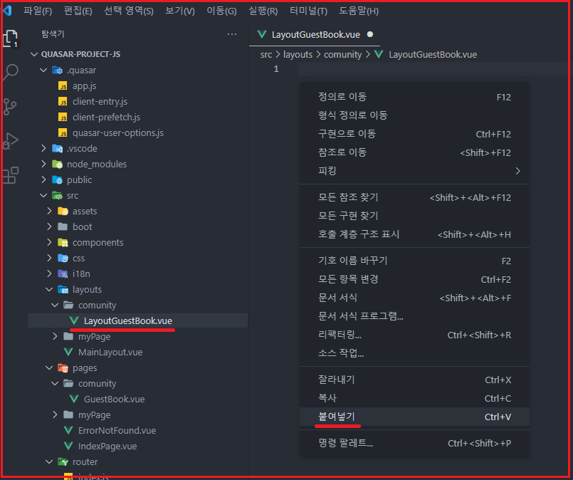 src \ layouts \ comunity \ LayoutGuestBook.vue 파일을 열어서
