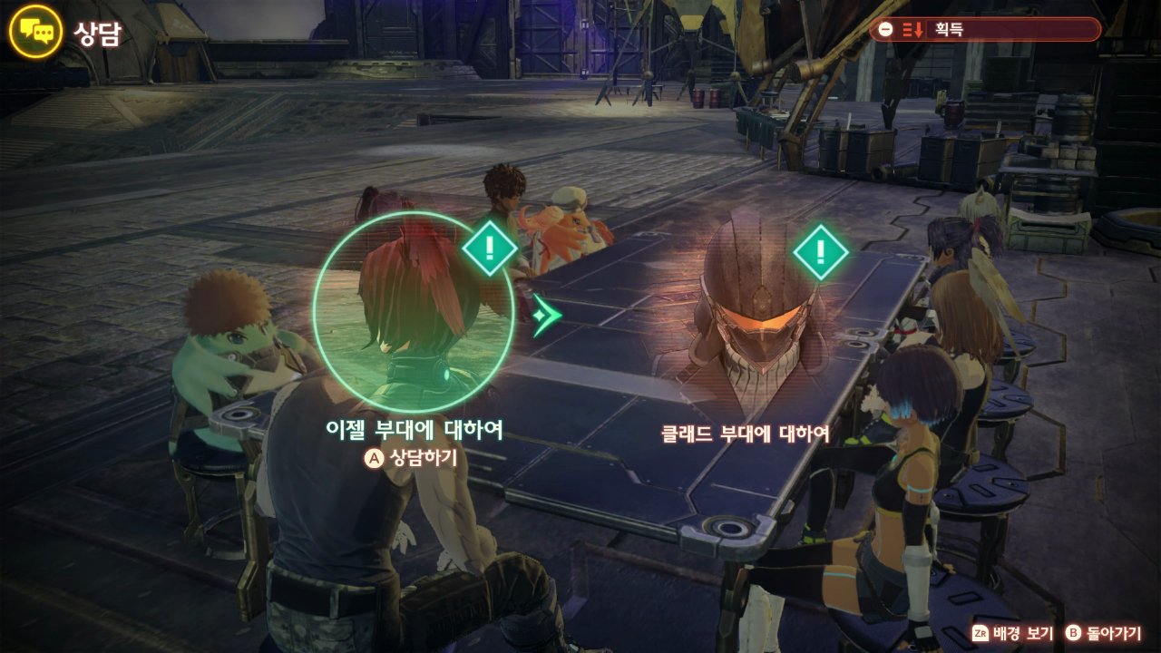 콜로니11 야외 식당에서 헥센과 대화를 한다