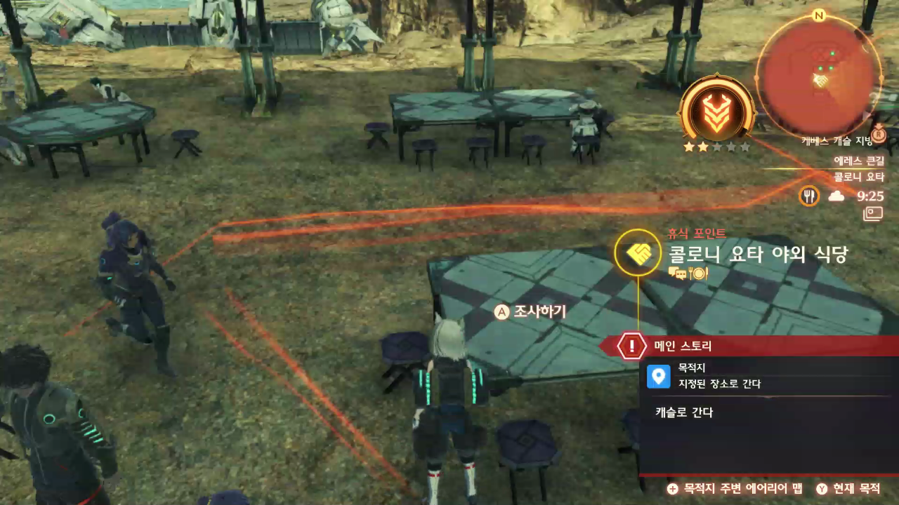 콜로니 요타 식당 근처에서 카스가와 대화를 한다