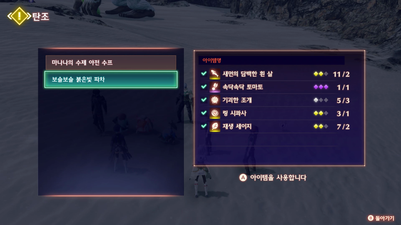 보슬보슬 붉은빛 파차로 요리해서 주면 퀘스트가 진행된다