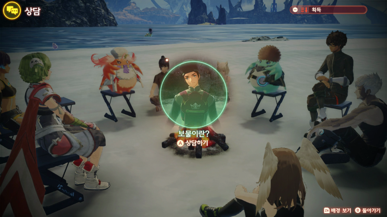 대화를 하면 보물이란? 정보를 얻는데 근처 휴식지로 가서 상담을 한다