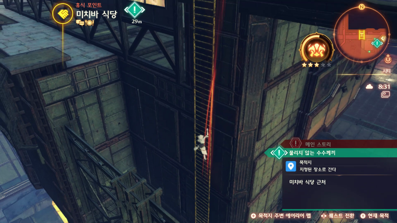 미치바 식당 뒤에 사다리를 타고 올라가서 퀘스트를 완료한다