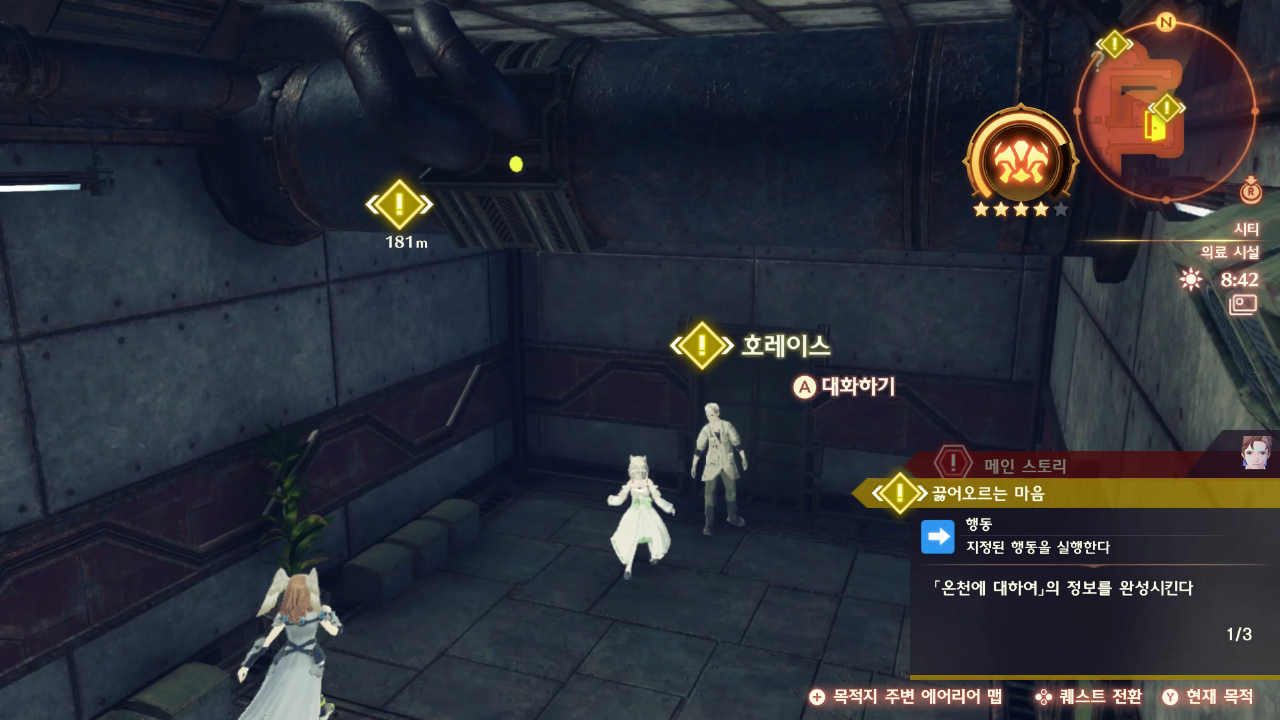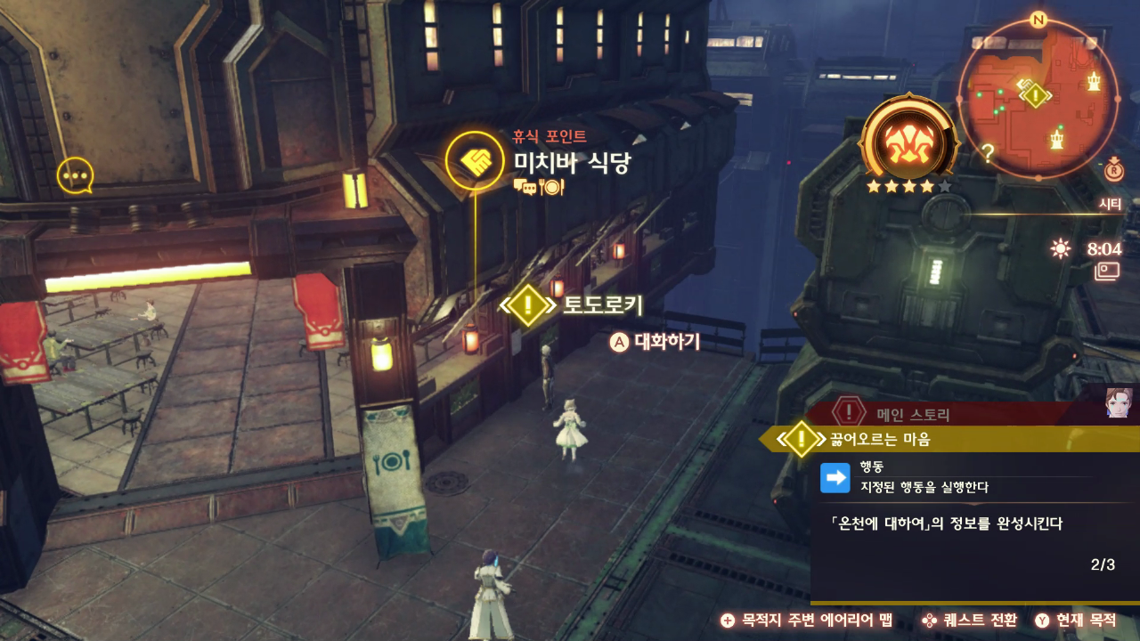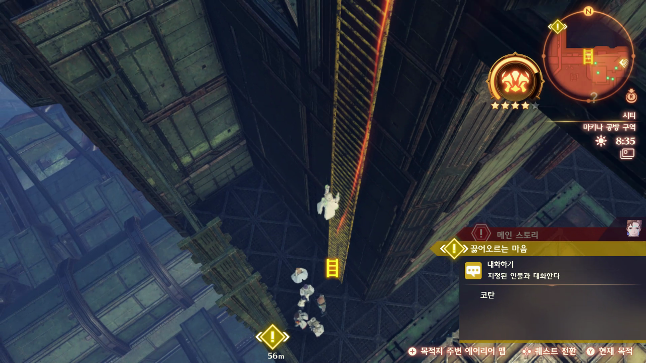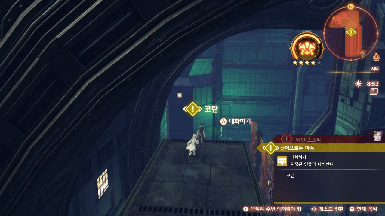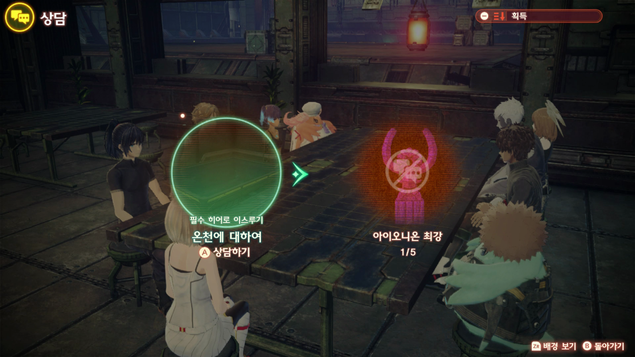 상담을 한 후에 식당 뒤에 사다리를 타고 올라가 코탄과 대화를 한다