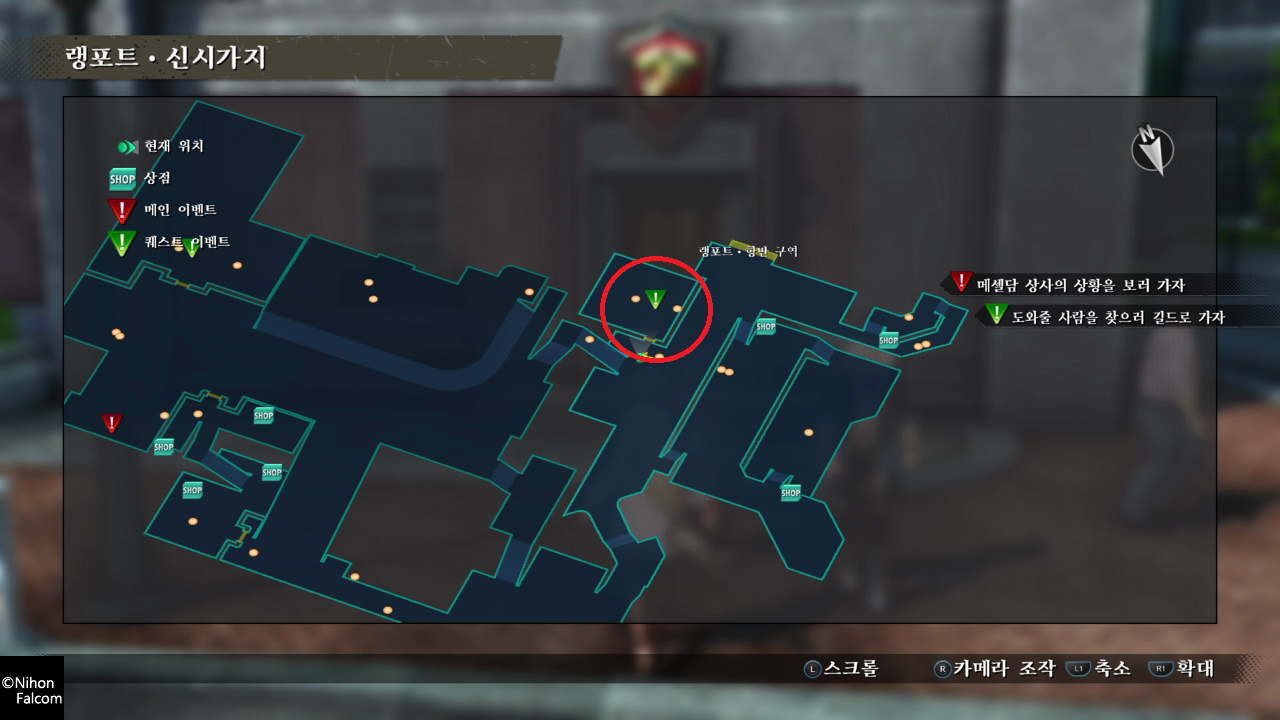 랭포트 신시가지 > 신시가지 입구로 이동해서 지정된 장소로 가서 다트와 토픽을 하면