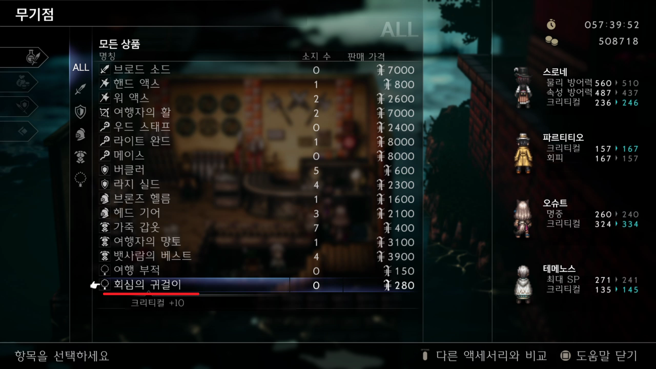 커낼 브라인 마을 무기점에서 회심의 귀걸이 구매