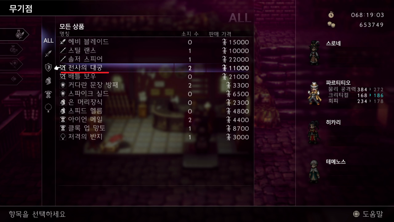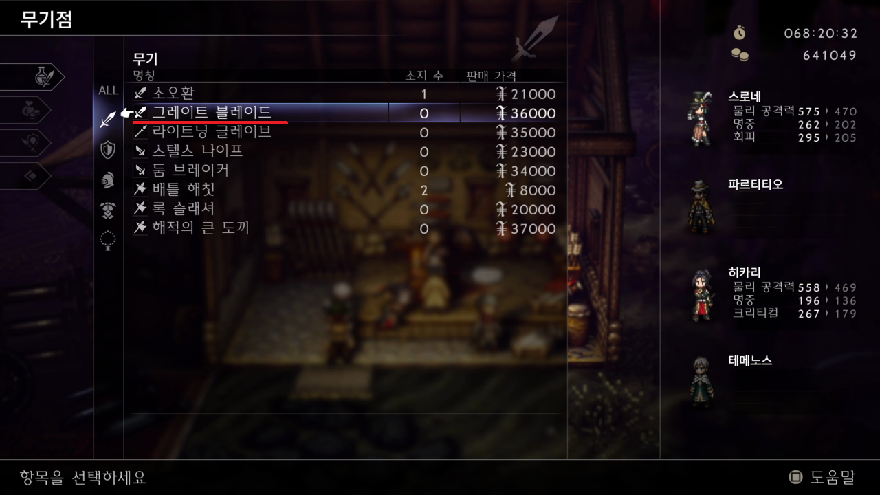 사이 마을 > 무기점에서 그레이트 블레이드 구매를 해야 하는데
