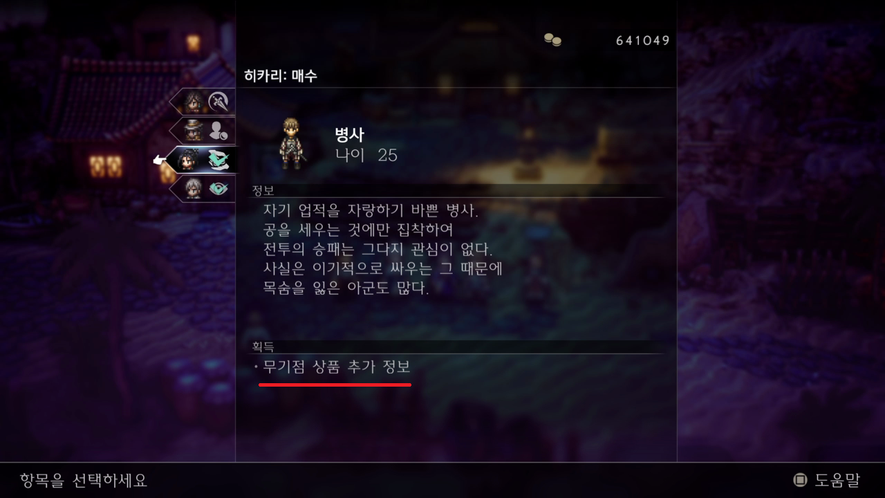 표시한 NPC에게서 히카리로 매수를 하면 무기점 상품이 추가된다