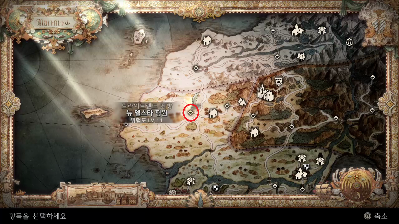 브라이트랜드 지방 > 동 뉴 델스타 가도 > 맨 오른쪽에 위치한 집에 가면 된다
