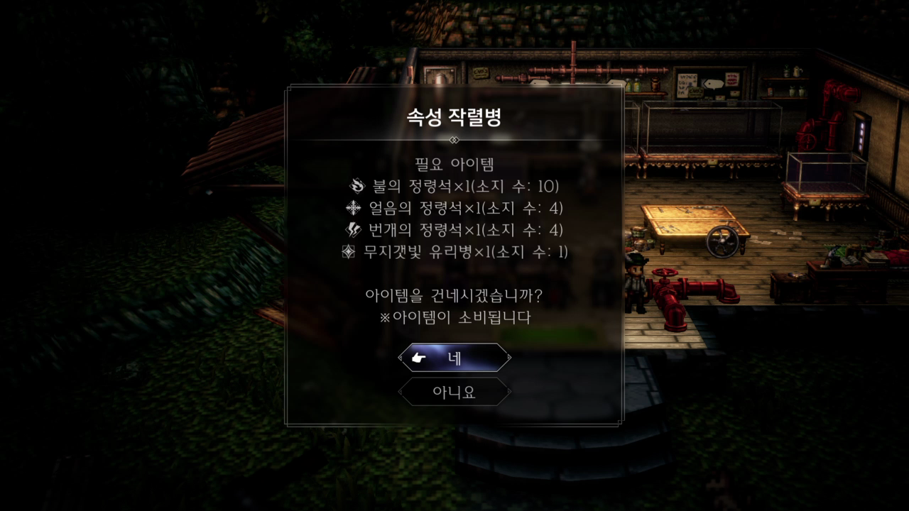 불의 정령석, 얼음의 정령석, 번개의 정령석 1개씩 구매한다