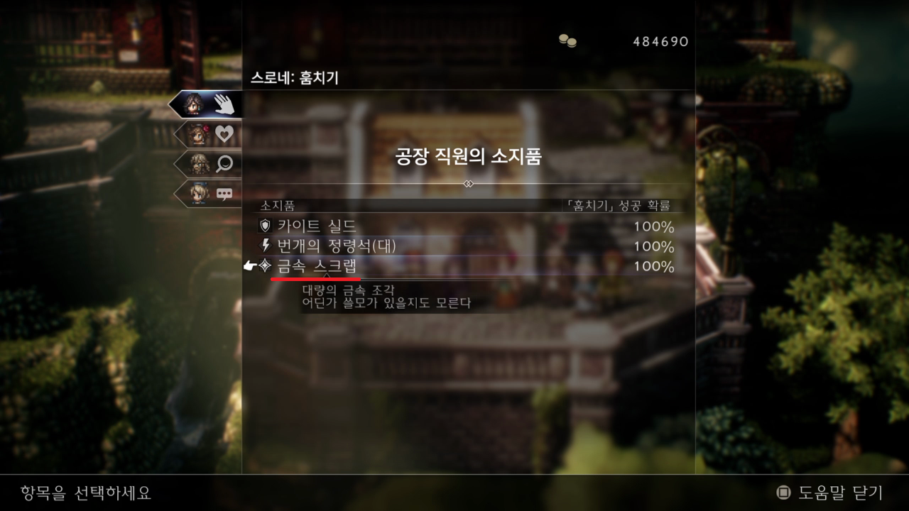 클록 뱅크 마을에서 위로 올라가 공장가에 무기점 앞에 NPC 소지품을 보면