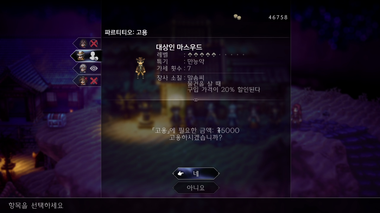 2. 시간은 저녁으로 유지하고 다시 가서 마스우드를 고용한다