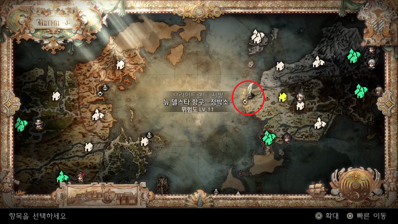 브라이트랜드 지방에 뉴 델스타 항구로 이동해서 배를 타고 이동한다