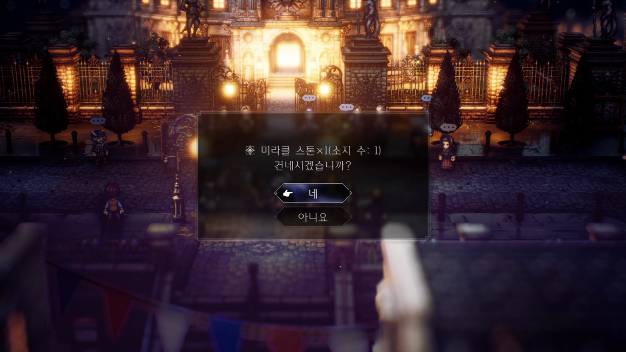 낮시간으로 변경해서 스로네로 미라클 스톤을 훔쳤다