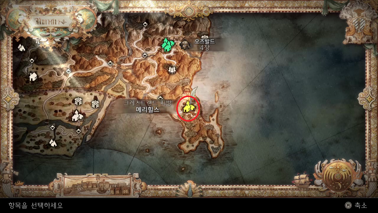 지도 스톰헤일 마을에서 맨 아래에 있는 '메리힐스' 마을로 가야 한다