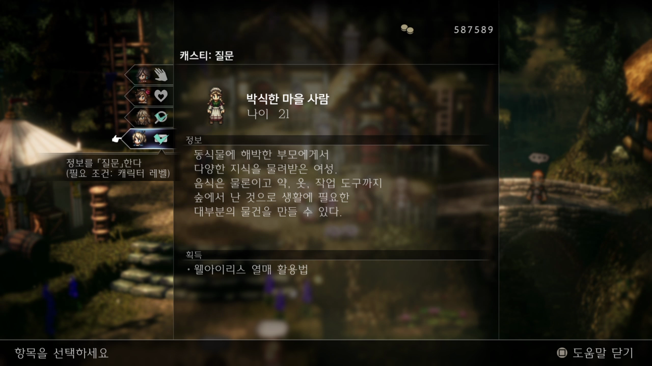 크롭데일 마을에 여관 앞에 있는 '박식한 마을 사람'에게서 캐스티로 질문을 한다